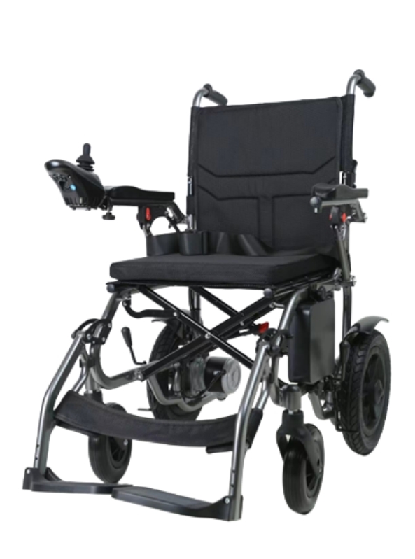 كرسي متحرك كهربائي من سبيكة الألومنيوم (محرك مفرش، بطارية ليتيم، قابلة للطي)
